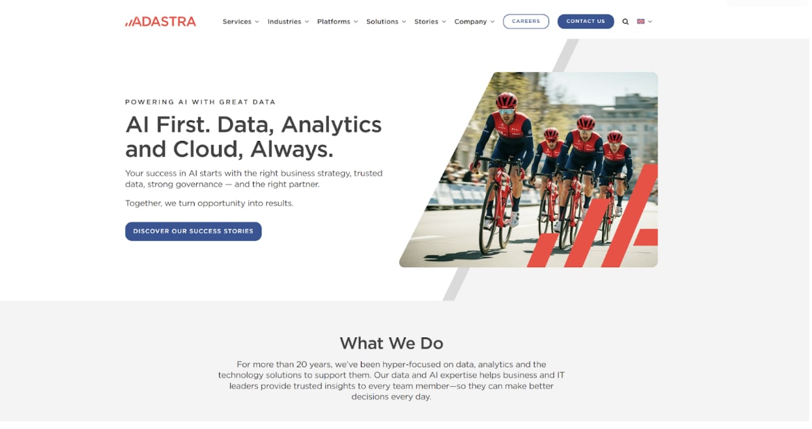 Adastra comes from the data world and it shows. Their cloud practice grew out of data warehousing, analytics, and governance. That means when they talk about cloud, they're thinking about where the data lives, how it moves, who can access it, and what regulations apply. Enterprise clients like that. Banks, telecoms and large retailers are organizations with compliance teams and audit trails. Adastra speaks their language.